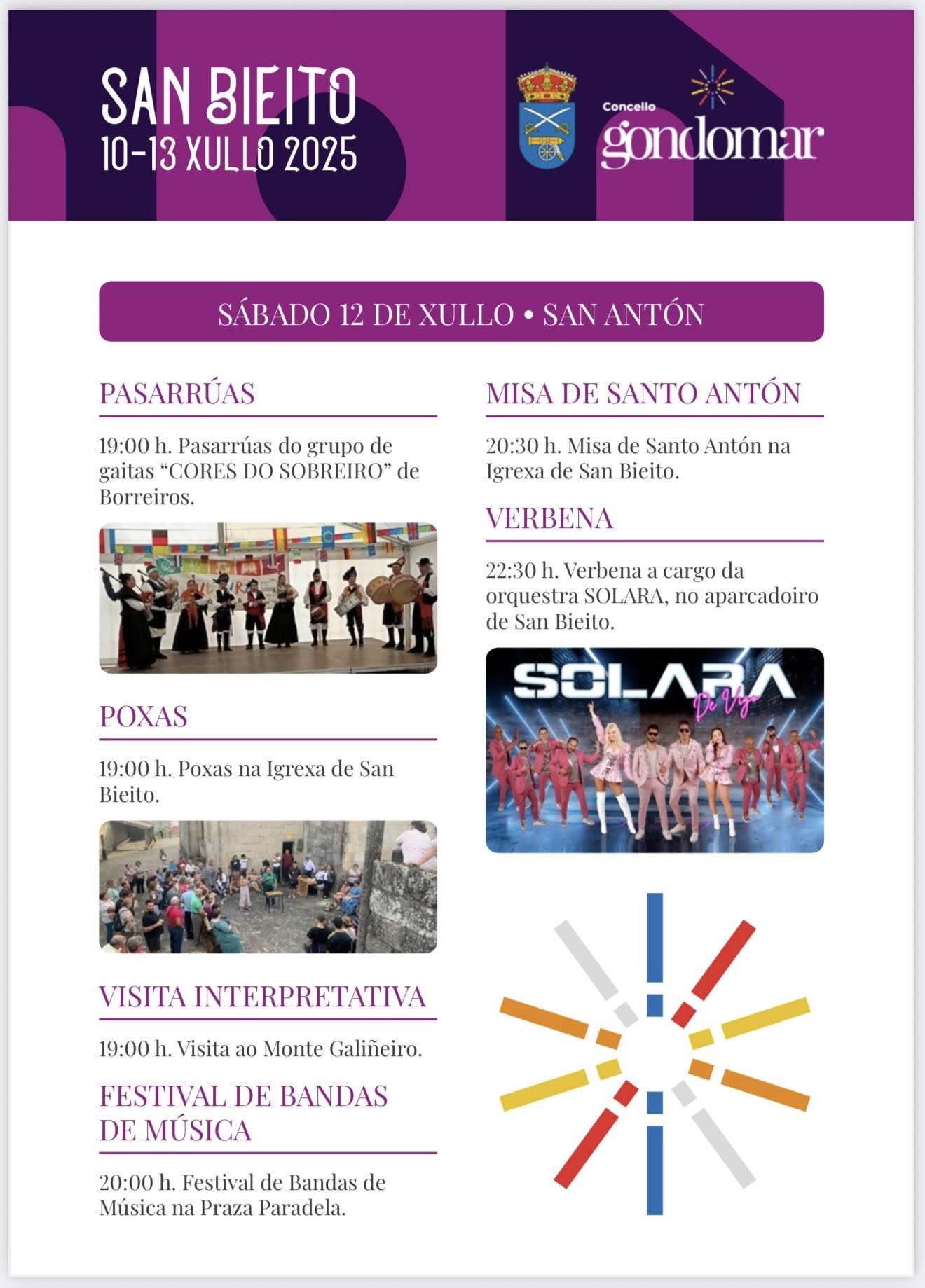 Puede ser una imagen de texto que dice "Concello gondomar Ж *SAN SAN BIEITO GONDOMAR 10-13 XULLO 2025 CONSULTA CONSULTAOPROGRAMAEN o PROGRAMA EN concellodegondomar.ga gal"